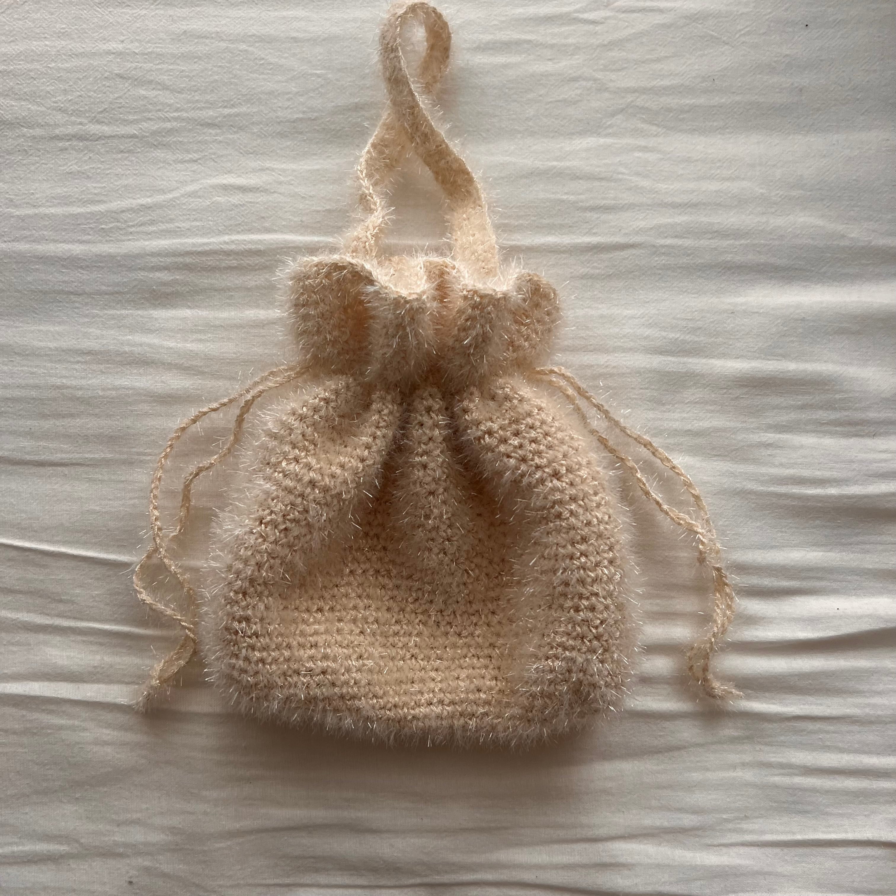 左右の紐を絞ることのできる巾着ポーチ型のバッグです✮*。゚